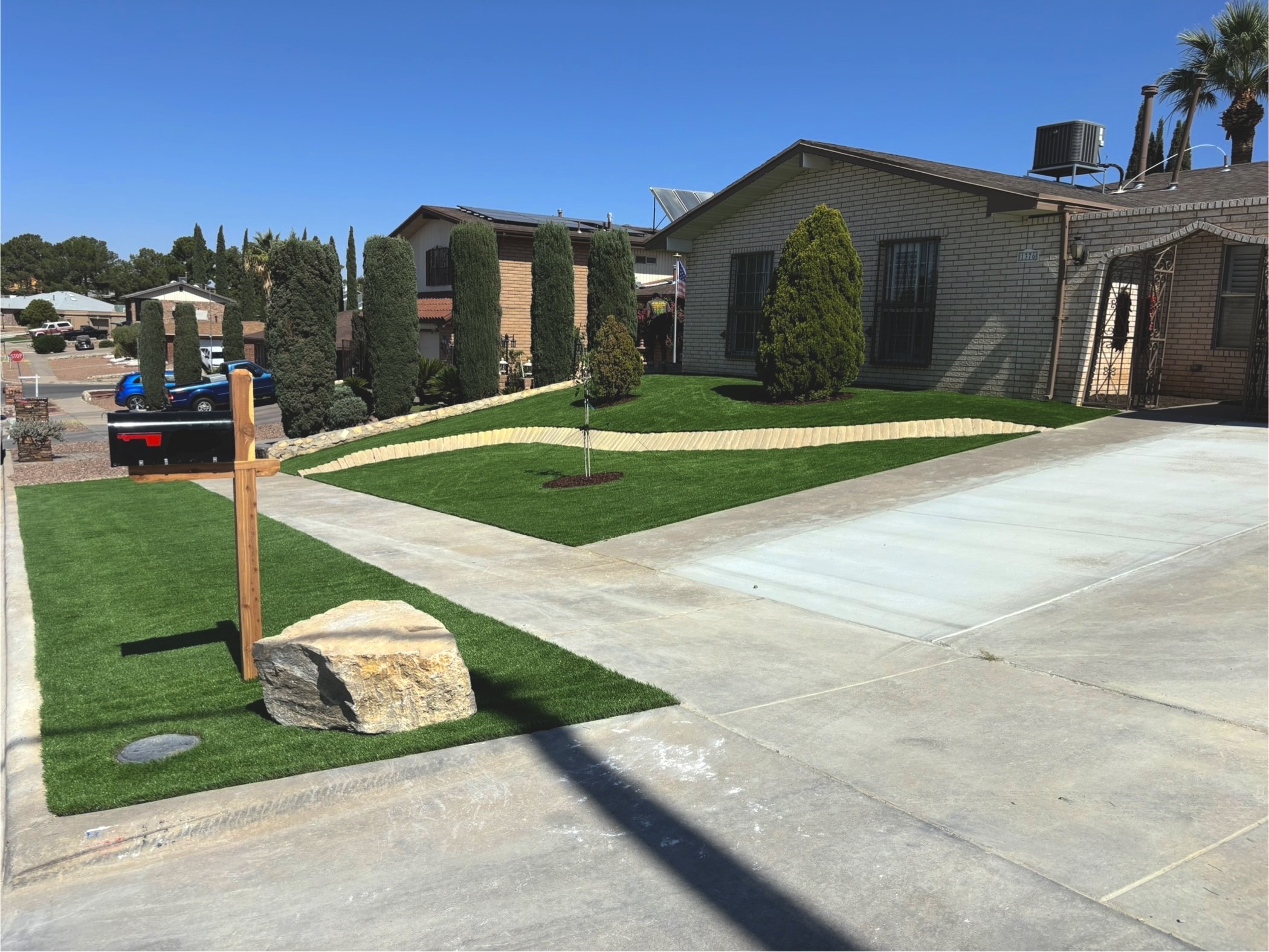 “An amazing experience to watch 915 Yard restoration do the work with a professional team of individuals, incredible equipment and crew all streamlined to perfection. I say it was a jaw dropping Transformation to our front property. Beyond satisfied, we are grateful for such an exceptional company and beautiful work. We will always recommend and use this great company and team! Many thanks to Gilbert the bossman who was always going the extra mile not to mention had great ideas and communication to assists us!”